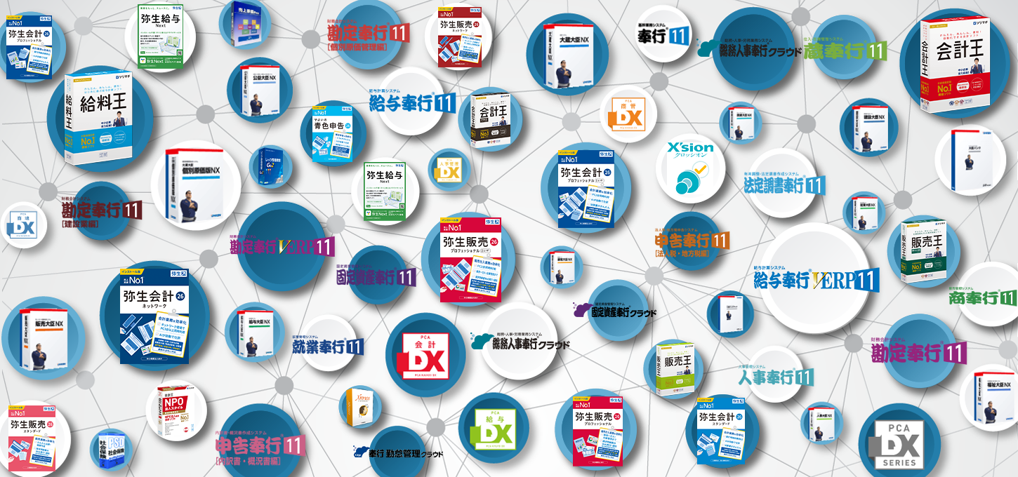 会計・販売管理・給与計算・勤怠管理・原価管理・顧客管理・グループウェア・SFA・CRM等の